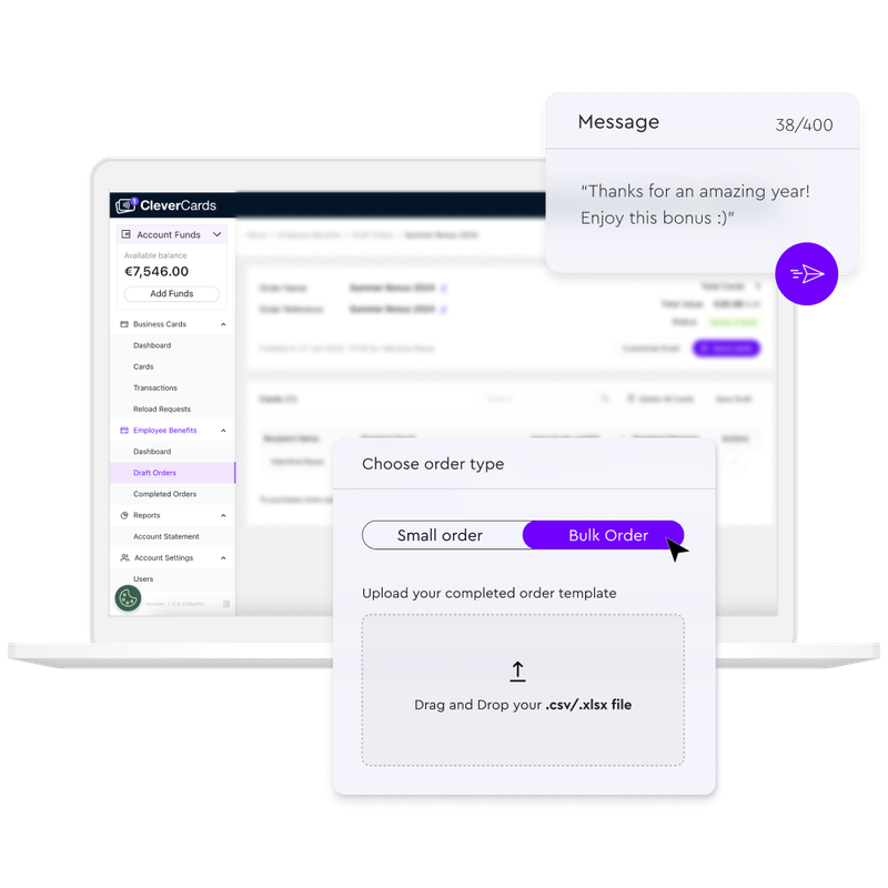 No more managing physical inventory or postage delays. Simply order your digital Mastercard online and send instantly to your employees’ email. Our user friendly platform allows you to send bulk orders, saving valuable time and resources. Simplify your corporate gifting with Clever Cards.